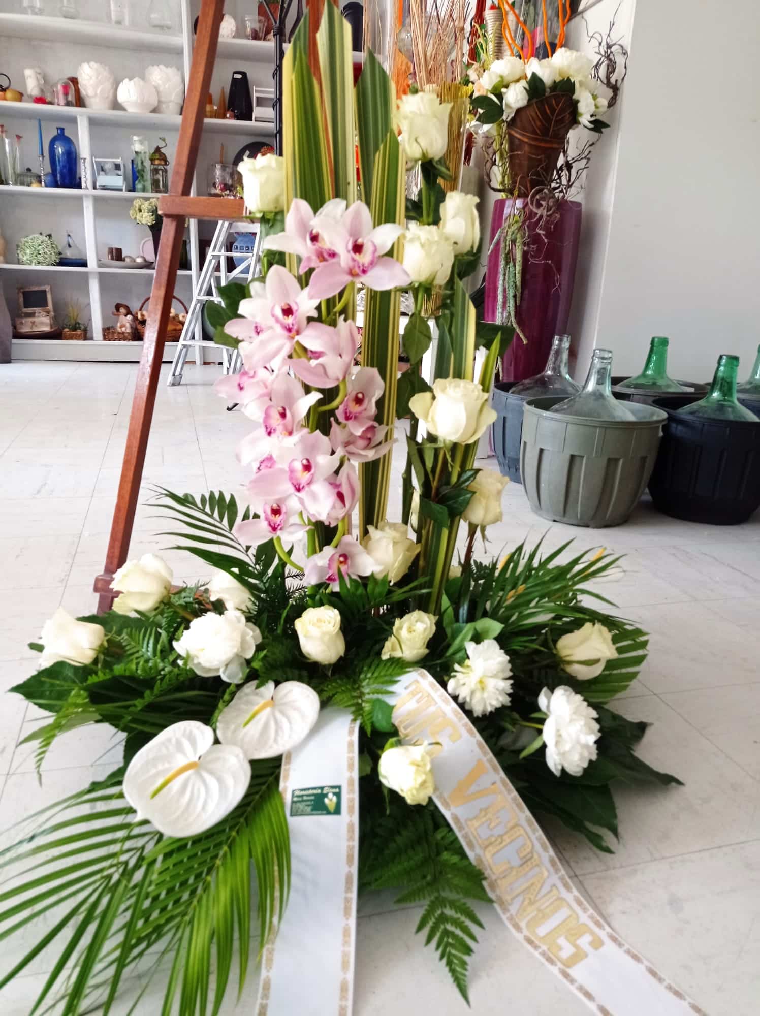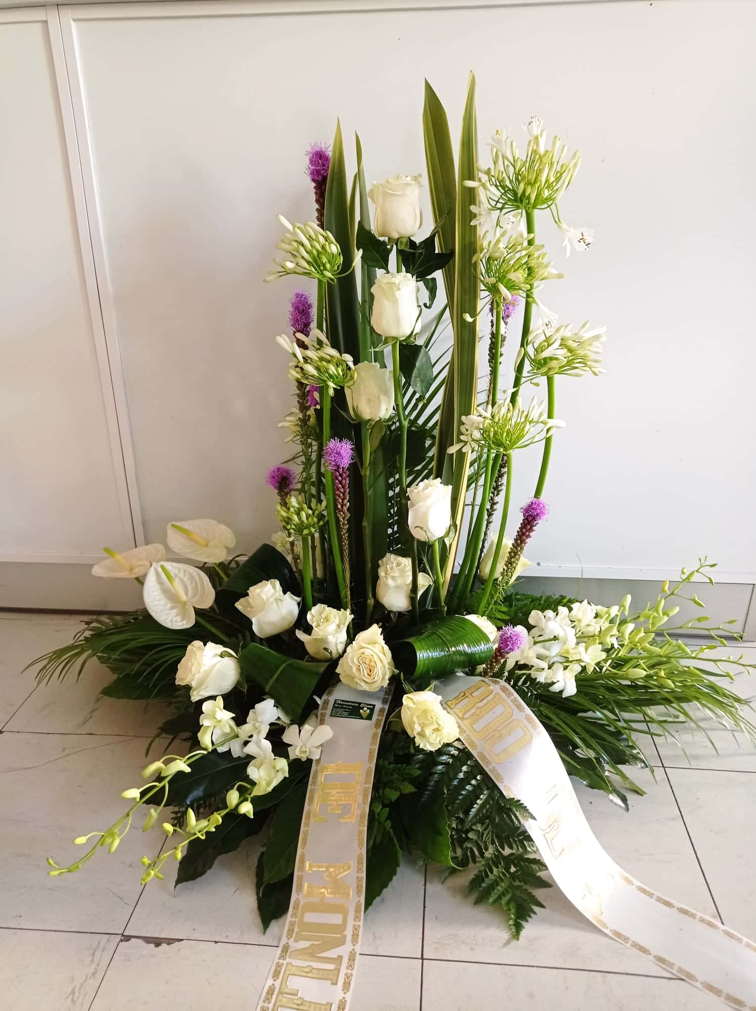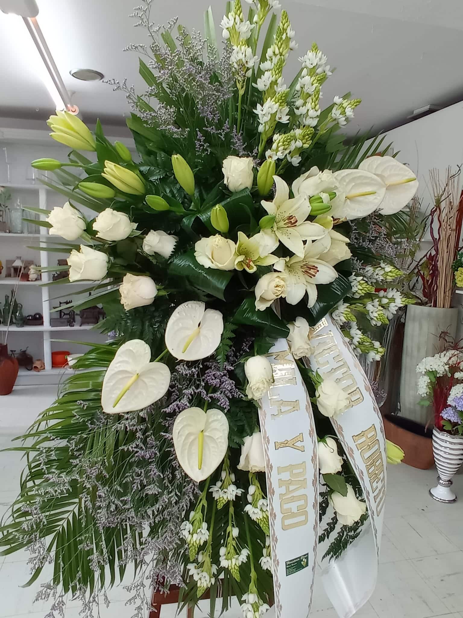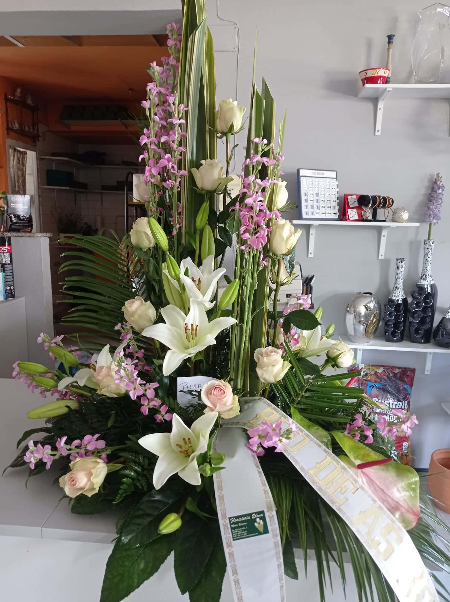 Una de nuestras especialidades es el arte floral funerario. En Floristería Elena diseñamos centros, ramos y coronas con todo tipo de flores y tamaños.