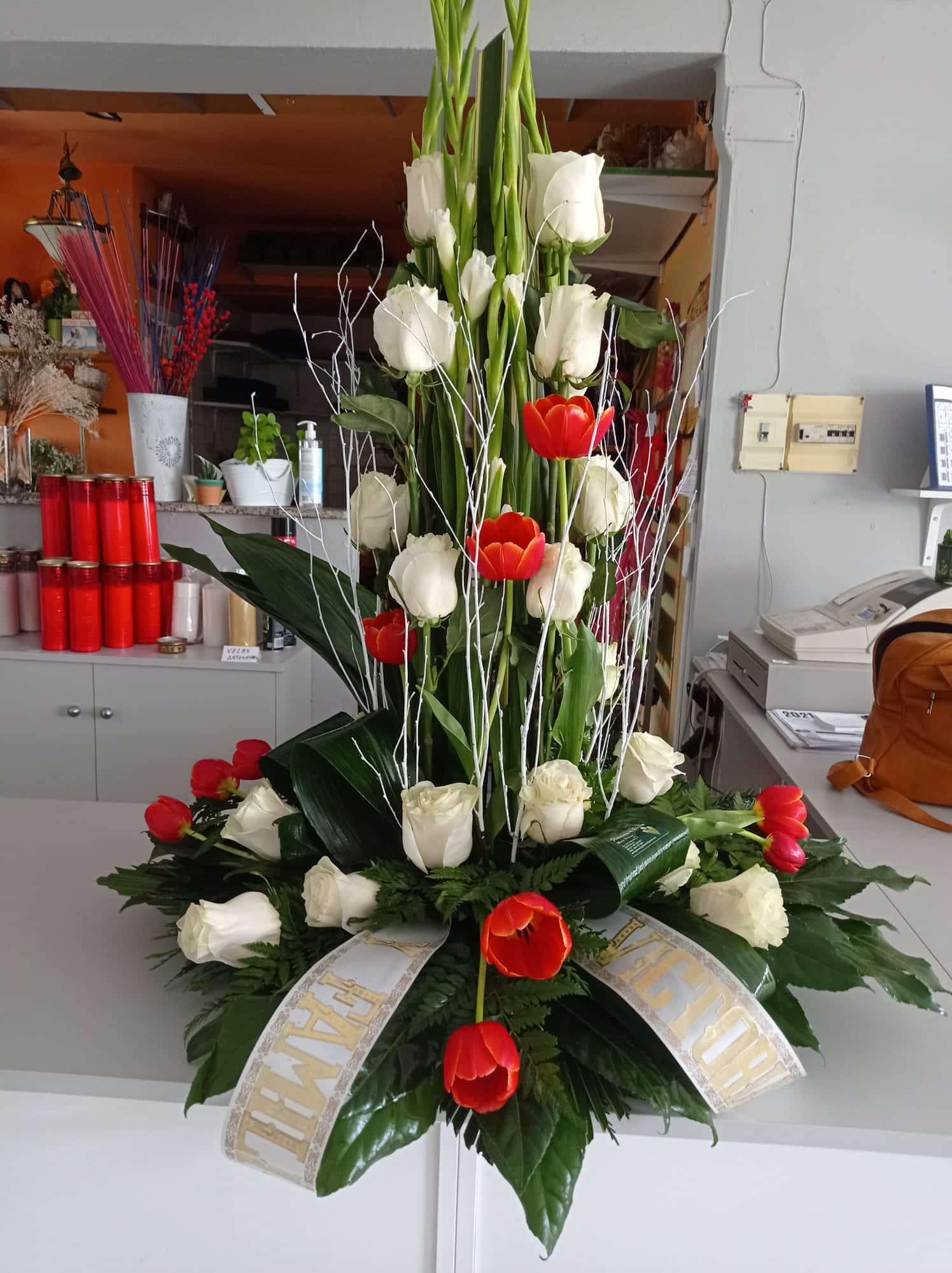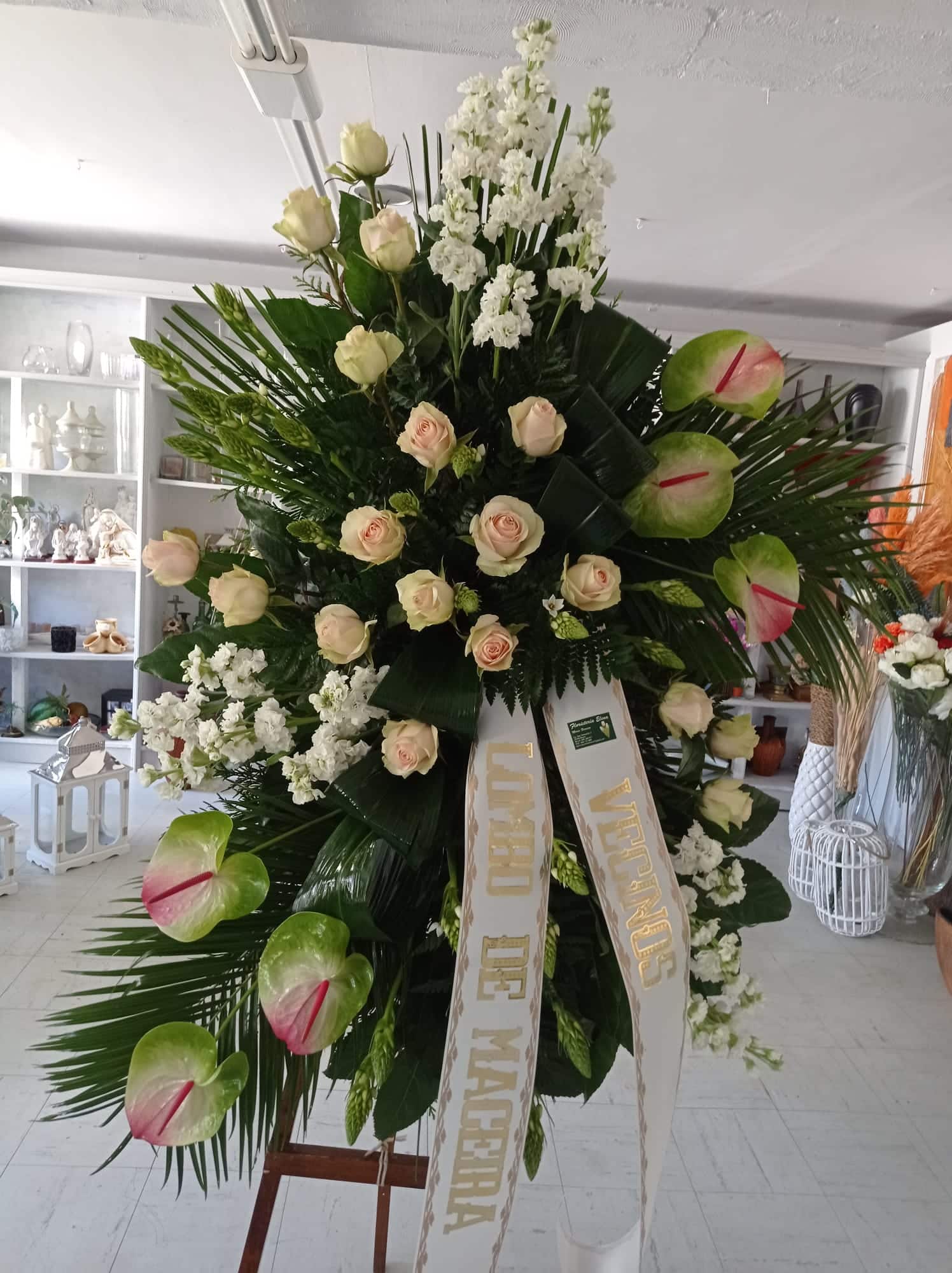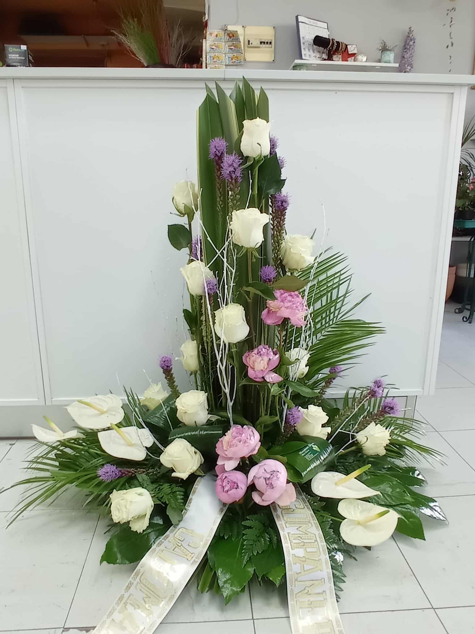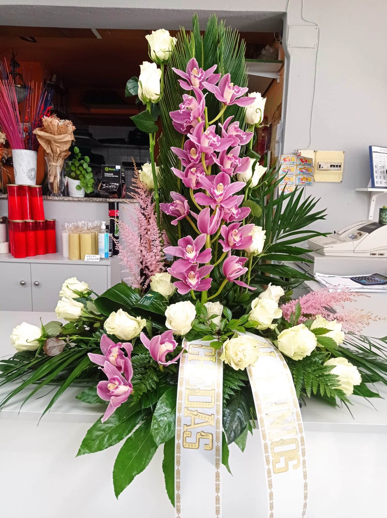 Una de nuestras especialidades es el arte floral funerario. En Floristería Elena diseñamos centros, ramos y coronas con todo tipo de flores y tamaños.